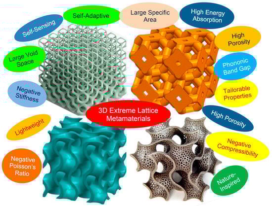 Overview of 3D extreme lattice metamaterials: structure–property relationship.