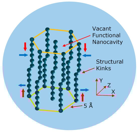 Due to its exceptional set of properties, this new nanomaterial can serve as an excellent multilayer nano-enhanced interface. The spatial structure of the 2D LCC nano-matrix can be represented as a two-dimensionally distributed hexagonal array, containing parallel one-dimensional carbon chains oriented perpendicular to the substrate surface. These parallel chains are held in the hexagonal array by van der Waals forces (Figure 3).