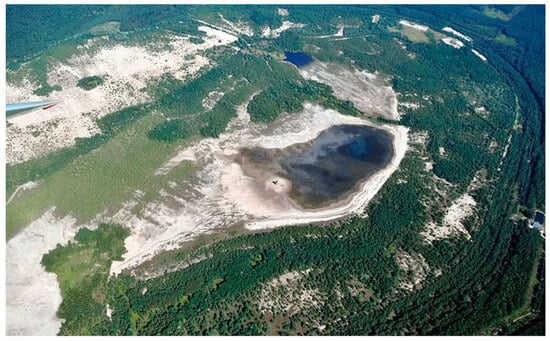 The second use case for system validation is the Gilow TSF located near Lubin in the Lower Silesian Voivodeship in southwestern Poland (see Figure 4). The Gilow reservoir, an artificial reservoir built in 1968, was primarily used to store post-flotation waste from the nearby copper mine in Lubin. The reservoir was decommissioned in 1977, and afforestation efforts are currently underway. The Gilow TSF, covering an area of 620 hectares, reached its maximum level of 177.5 m above sea level (asl) in June 1980. Subsequently, a liquidation procedure was initiated. Approximately 60 million cubic meters of tailings were deposited within the TSF during its operational lifespan. Between 1982 and 1986, extensive reclamation work was carried out in the landfill area to facilitate biological land reclamation. Until May 1990, the Gilow TSF served as an emergency retention reservoir for Zelazny Most, with the collected water being redirected through an overflow tower for industrial purposes.