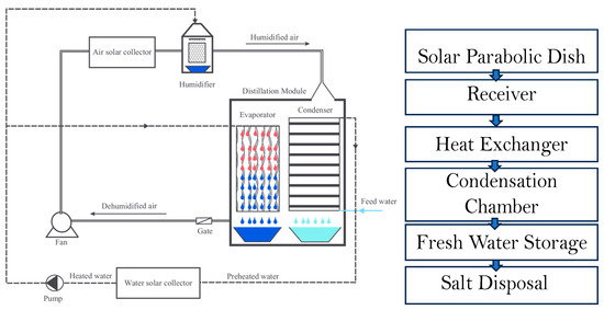 - Yuan, G.; Wang, Z.; Li, H.; Li, X. Experimental study of a solar desalination system based on humidification–dehumidification process. Desalination 2011, 277, 92–98. [Google Scholar] [CrossRef]