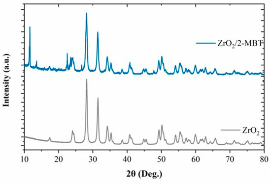 XRD pattern of ZrO2 and ZrO2 loaded with 2-MBT.