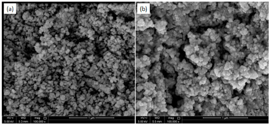 SEM images of (a) ZrO2 and (b) ZrO2 loaded with 2-MBT.