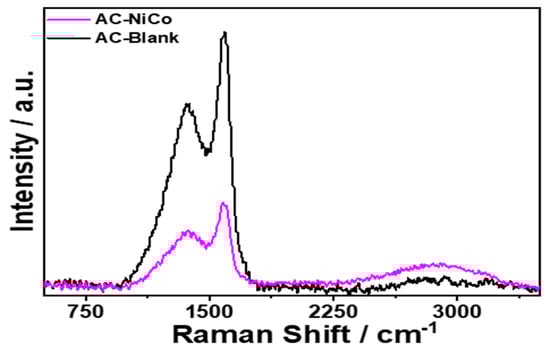 Raman spectra for activated carbon (AC) with and without nickel cobalt doping (AC-NiCo).