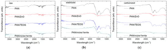 FTIR measurements of (a) as-spun, (b) stabilized, and (c) carbonized samples.