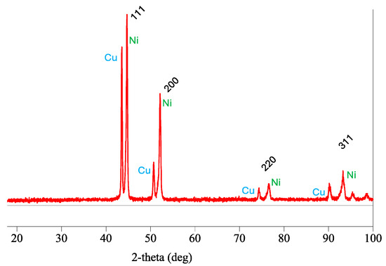 XRD pattern of the Ni-Cu-coated NdFeB alloy.
