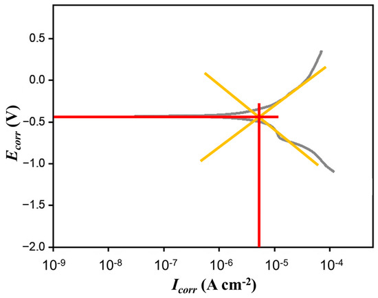 Diagram of Tafel extrapolation of Ni-Cu-coated NdFeB alloy.
