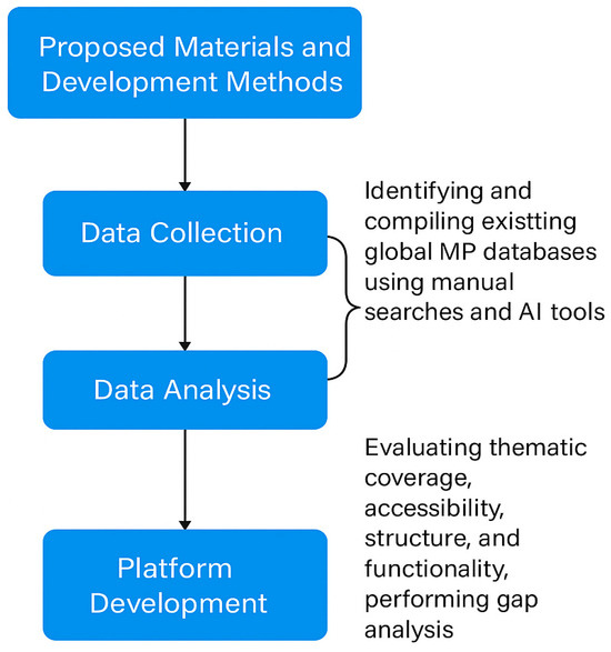 - Data Collection: The data collection phase focused on identifying and compiling existing global MP databases. A dual approach was employed, which included targeted manual web searches of known repositories and AI-powered tools to uncover additional relevant data sources.