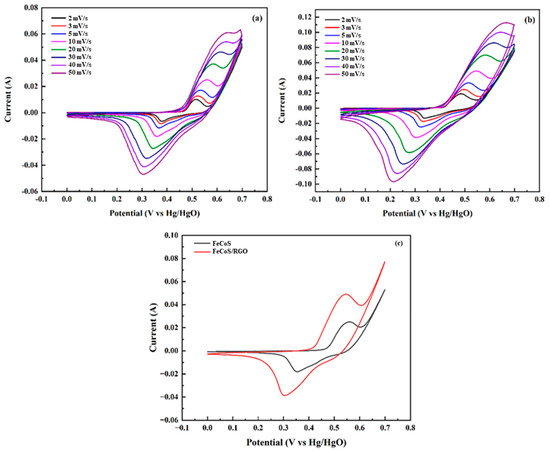 Electrochemical performance was assessed via cyclic voltammetry across a range of scan rates, from 2 to 50 mV/s. The Fe