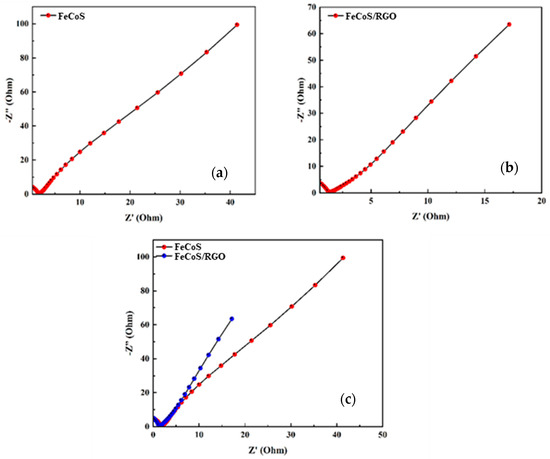 Figure 8b, respectively, in order to evaluate their charge storage behavior and interfacial kinetics. The Nyquist plot reveals enhanced EDLC behavior upon the incorporation of RGO, as evidenced by the upward shift in the low-frequency tail of the curve. Furthermore, the Fe