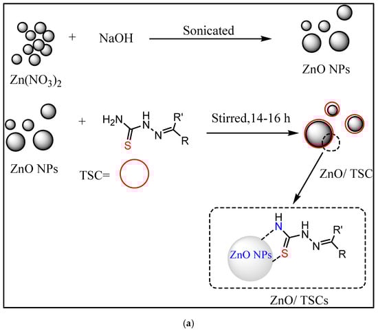 ZnO/TSC nanocomposites are attracting increasing attention because of the cooperative effects between the ZnO NPs and the attached organic ligands. The functionalization of ZnO with TSC derivatives not only enhances its surface activity and compatibility with biological systems. Recent research has revealed that these nanocomposites possess notable cytotoxic, antibacterial, antioxidant, and photocatalytic properties, making them valuable materials for biomedical applications and environmental purification [31]. Some of the following nanocomposites have been reviewed in the literature.