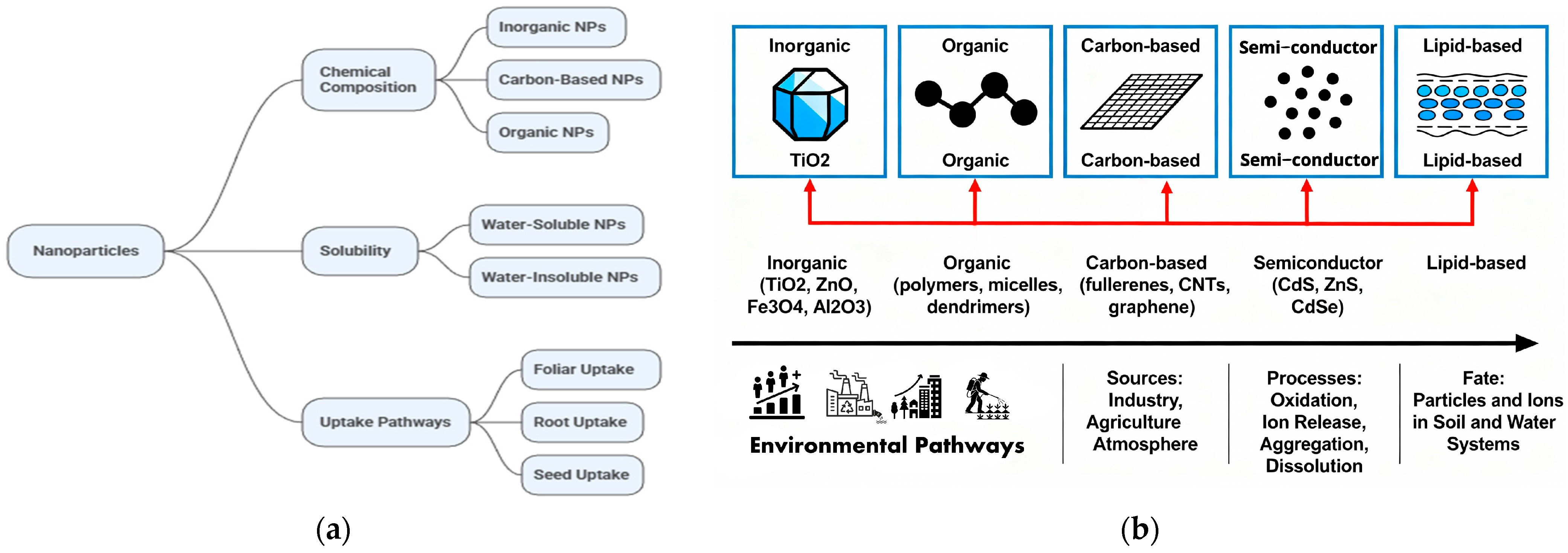 - Zhang, H.-Y.; Su, W.-H. Classification, Uptake, Translocation, and Detection Methods of Nanoparticles in Crop Plants: A Review. Environ. Sci. Nano 2024, 11, 1847–1870. [Google Scholar] [CrossRef]