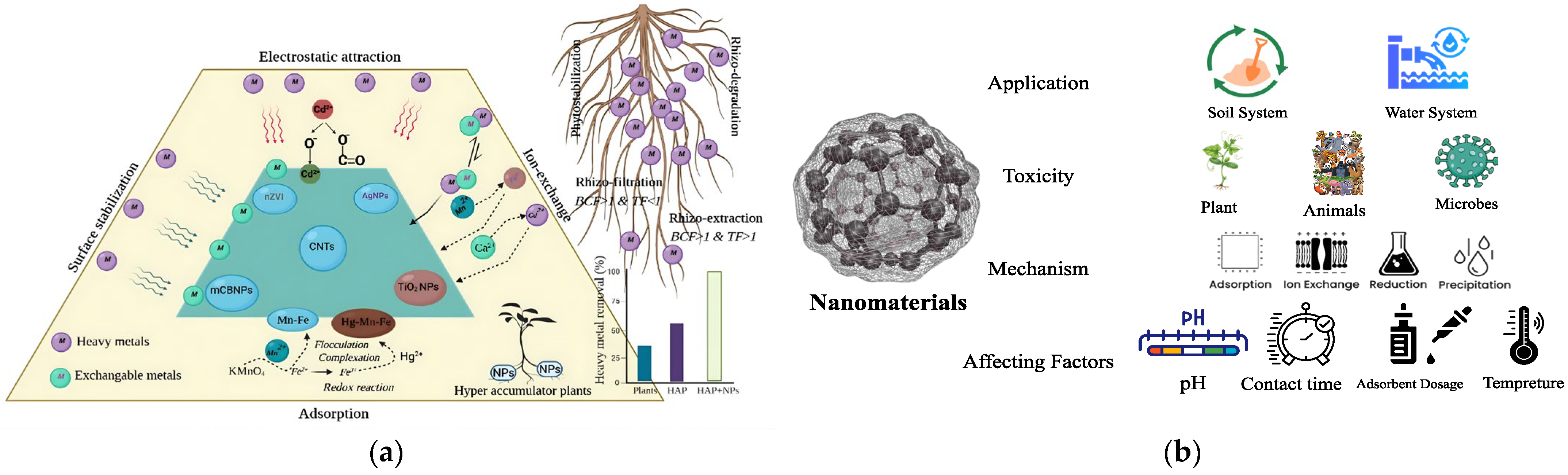- Sathish, T.; Ahalya, N.; Thirunavukkarasu, M.; Senthil, T.S.; Hussain, Z.; Haque Siddiqui, M.I.; Panchal, H.; Kumar Sadasivuni, K. A Comprehensive Review on the Novel Approaches Using Nanomaterials for the Remediation of Soil and Water Pollution. Alex. Eng. J. 2024, 86, 373–385. [Google Scholar] [CrossRef]