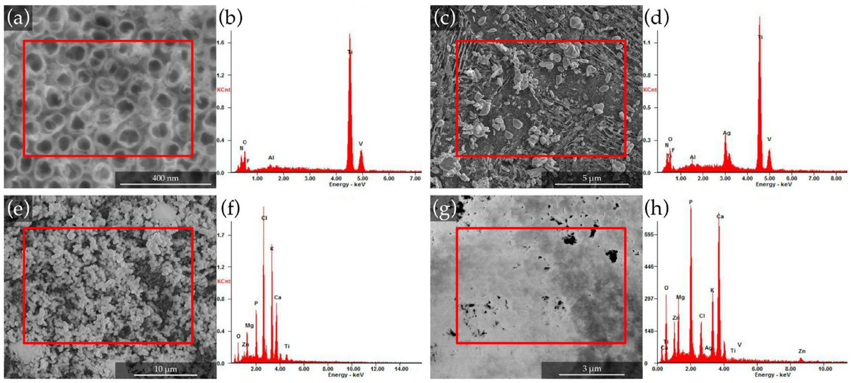 - Final product (functionalized surface): Ti0 → TiO2 → Ag0 → Ca10-x-y(MgxZny)(PO4)6(OH)2.