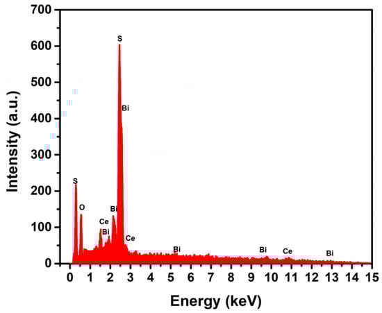 Energy-Dispersive X-ray Spectroscopy (EDS) of thiourea-doped BiCeO3 (BCT).