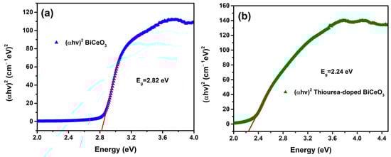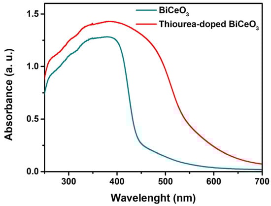 UV-VIS spectroscopy of BiCeO3 and thiourea-doped BiCeO3.