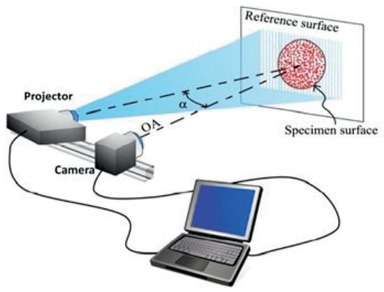 Illustrative schematic of the setup used for Fourier Profilometry (FP)+2D-Digital Image Correlation (DIC) proposed by Sesé et al. [3].