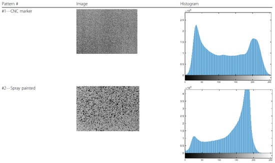 To determine the effectiveness of this new method, a comparison was made with respect to a sample marked with spray paint. The results can be seen in the histograms shown in Figure 5, where the left side of the graph represents black, while the right side represents white. It can be observed that histogram N1 presents pronounced peaks both on the left and on the right, which represent tones closer to black and white, while histogram N2 presents a very prominent peak on the right side, indicating a strong presence of white.