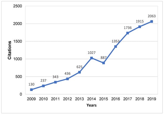 Figure 7 shows the citation evolution per year. This graph confirms the results shown in Figure 1 regarding the interest shown in hot stamping technology. Nevertheless, this absolute value does not reflect the actual relevance of citation, such as other factors as the h-index.