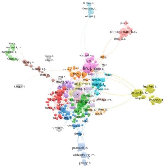 Figure 13 shows a network map visualization of the authors related to the hot stamping technology that have at least two publications. There is a total of 316 authors grouped in 23 clusters. J. Lin, the researcher with most publications in this decade, appears in the pink cluster. S. Brushi, the second relevant researcher, appears in the yellow cluster.