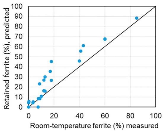 Comparison of predicted ferrite fraction by DICTRA simulations and measured values in [4].