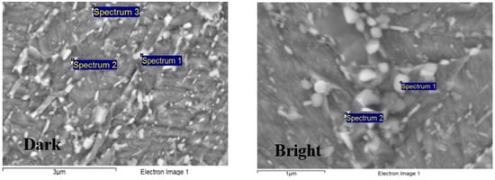 Figure 8 and Table 3 compare the morphology and composition of carbides in the bright and dark bands. In the bright bands, the carbides are larger, in the dark ones, they are more dispersed. The carbides in dark band have a higher molybdenum content.