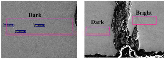 Moreover, crude niobium carbides were found in the dark bands (Table 4 and Figure 9). Judging by their faceted shape (Figure 5b), they were formed at the end of solidification and confirm the liquation nature of the banding found. Similar inclusions are located in the segregation bands in the area of secondary cracks, where the samples failed after SSC. Mostly, these inclusions are niobium carbides, and they are formed during rolling and heat treatment. Coarse niobium and titanium carbonitrides are formed at the end of the solidification of steel.