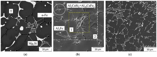 - In comparison to AlZnMgFeSi and AlZnMg2CaFeSi, the AlZnMg1CaFeSi exhibited a sufficiently fine as-cast structure, including differentiated constituents of equilibrium origin Al3Fe, Al10CaFe2, Al2CaSi2, and (Al.Zn)4Ca. After two-step annealing and quenching they were mostly spheroidized, and the non-equilibrium T phase was dissolved in (Al).