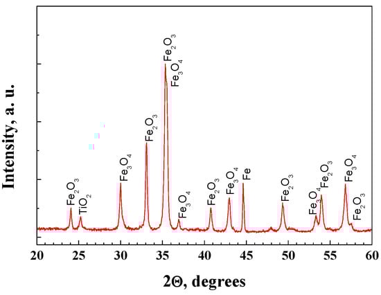 The presence of two compounds/iron oxides, magnetite and hematite phases, were registered by XRD analyses of all of the coating (Figure 1). This result was probably due to the oxidation of the substrate during the thermal treatment. Nevertheless, the peak that belongs to the anatase phase of TiO2 is well visible, which is due to the type of the multilayer system consisting of three layered TiO2 coatings. It could be supposed that the zirconia layer possessed an amorphous structure, because zirconia crystallographic phases were not registered. Several research groups have also revealed that the amorphous phase of the composites on the base of TiO2 and ZrO2 is stable after treatment to 450 °C [13] and even at 600 °C [14].