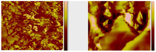 The SEM images of the investigated structures reveal relatively homogeneous dense morphology without visible cracks A few secondary small crystalline particles were formed on the surface (Figure 2). Similar observations can be made from the AFM images in Figure 3.