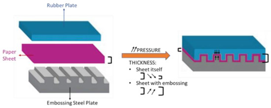 As a result, there is an optimal pressure for the embossing process, where the effect of pressure when densifying the paper sheet can be advantageous, as the gain in mechanical strength can counterbalance the losses with the embossing operation. The liquid interaction with the different densified paper structures was also considered in this study to evaluate the spreading dynamic.