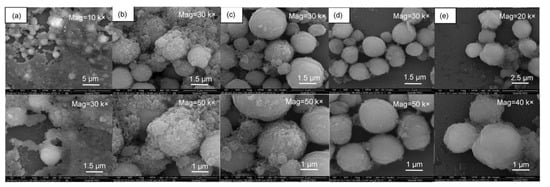 SEM of MPCM with different core/shell ratios: (a) 0.5:1, (b) 1:1, (c) 2:1, (d) 3:1, (e) 4:1. Adapted from [14].