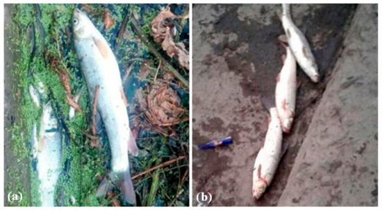 - Pejaver, M.K.; Somani, V. A study on fish kill in Railadevi lake, Thane Maharashtra. J. Aquat. Biol. 2000, 15, 47–49. [Google Scholar]