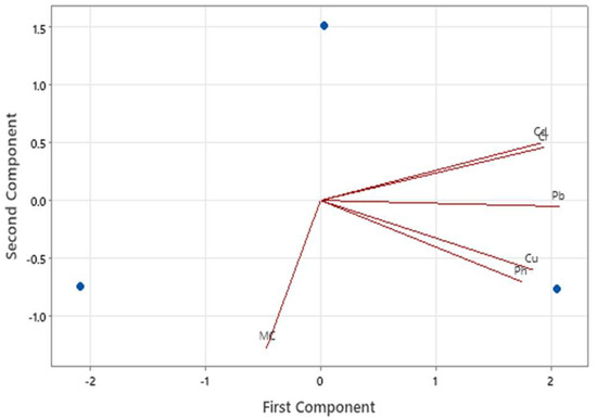 The pollution load index (PLI) was calculated using Equation (6) as follows: