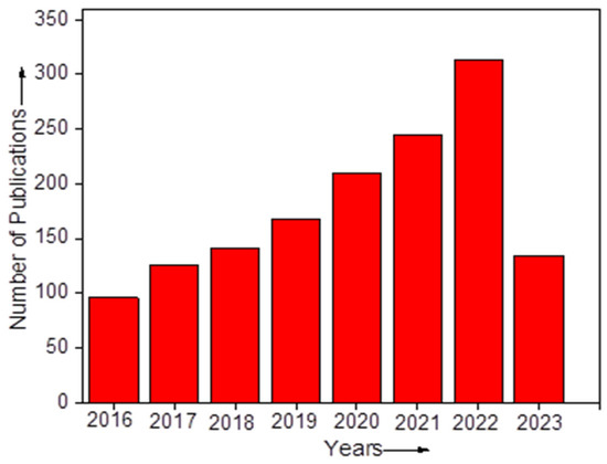 To the best of our knowledge, such a specific recent review on indoor pollution in Pakistan, with a well-arranged outline and an in-depth interpretation of recent publications, has not been seen in the literature before. The novelty of this review depends upon innovative topic selection and arrangement to form a framework and on the inclusion of all possible relevant studies of the indoor pollution situation in Pakistan. Moreover, the included literature is comprehensively discussed to depict the situation of indoor pollution. On this review topic, some previous research reports have been observed, nevertheless, the reported literature is not in a compiled and updated form that portrays the current state of IAQ in Pakistan. For this particular review, the literature was obtained from various databases such as Scopus, Science Direct, Web of Science, etc., because limited studies have been carried out regarding indoor air pollution in Pakistan. It is not possible for researchers to make future developments regarding IAQ management in Pakistan without access to prior knowledge of the recent literature. Accordingly, the relevant literature published between 2016 and 2023 in the Scopus database is shown in Figure 1.
