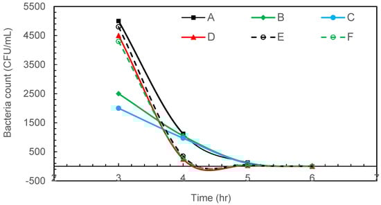 Figure 4 shows the result of radiation-resistant D. radiodurans disinfection with intermittent microbubbling. The complete removal of radiation-resistant D. radiodurans was observed after 5 h of intermittent air microbubble treatment.