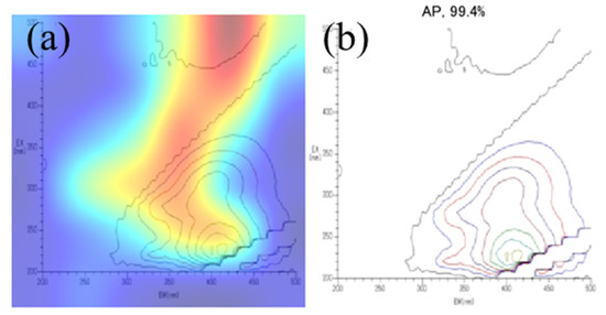 The excitation–emission matrix (EEM) method is an analytical technique that facilitates the simultaneous measurement of multiple fluorescent chemicals in a relatively brief timeframe with a streamlined pretreatment procedure. Conversely, non-targeted analysis, not limited to the EEM method, is often combined with multivariate analysis methods due to the unclear quantitative and qualitative interpretation of the results. A notable method that has emerged as a standard approach since approximately 2013 involves a synthesis of the EEM method and the PARAFAC method [18,19]. However, this approach is not without its drawbacks, as it involves complex data processing.
