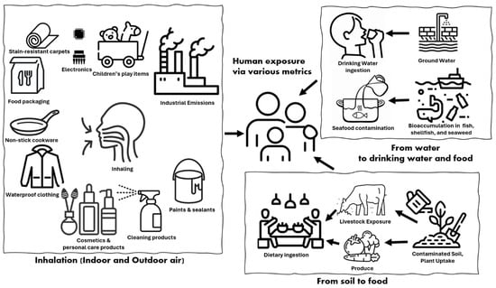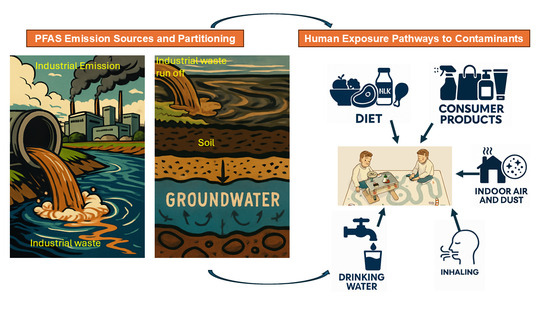 - DeLuca, N.M.; Minucci, J.M.; Mullikin, A.; Slover, R.; Hubal, E.A.C. Human exposure pathways to poly-and perfluoroalkyl substances (PFAS) from indoor media: A systematic review. Environ. Int. 2022, 162, 107149. [Google Scholar] [CrossRef] [PubMed]