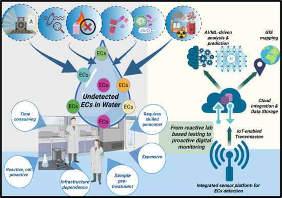- Ateia, M.; Wei, H.; Andreescu, S. Sensors for Emerging Water Contaminants: Overcoming Roadblocks to Innovation. Environ. Sci. Technol. 2024, 58, 2636–2651. [Google Scholar] [CrossRef]
