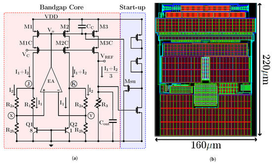 - Colombo, D.M.; Wirth, G.I. Impact of Different Op-Amps in CMOS Bandgap References Implemented in 0.18 μM Technology. Available online: https://sbmicro.org.br/sforum-eventos/sforum2009/colombo.pdf (accessed on 6 July 2021).