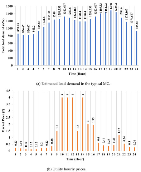 where DG demonstrates the dispatchable units including fuel cell (FC) and micro-turbine (MT), while Grid and Batt present the utility grid and the battery, respectively. The WT and photovoltaic (PV) are shown with RES as non-dispatchable units. Note that the utility has to buy all of the electrical power produced by RES units; consequently, the RESs’ output powers () are not included in the design variables’ vector; is applied to imply the on/off states of the ith dispatchable DG during each hour of the day.