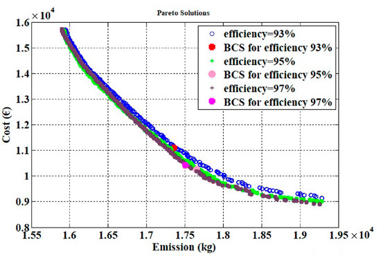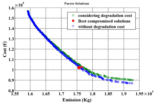 - The power constraints of the storage device (i.e., Li-ion battery in this study) as well as the degradation cost are considered in the MG’s MOOM problem. In order to consider different battery characteristics, including the battery efficiency, the battery’s initial charge, SOC, and different scenarios of the battery’s degradation cost are studied in the probabilistic MG’s MOOM problem.