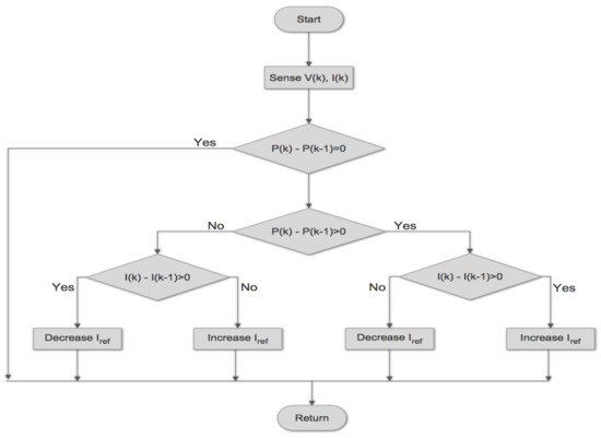 The MPPT converter applies current control to track the maximum power operating point and obtain the voltage at maximum power point. The MPPT algorithm utilized in this work is P&O technique, which is usually used to alter the duty cycle to obtain the maximum power; however, to ensure the functionality of both soft-switching technique and MPPT, the current is being altered by the proposed P&O algorithm in this work as shown in Figure 5.