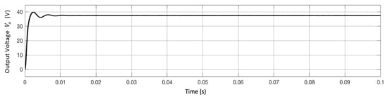 Figure 8 shows the output voltage of the converter without using the proposed controller. The input voltage is varied to check the behavior of the system. Figure 8 reveals that the output voltage does not reach the desired value. In this case, the output voltage reaches an undesirable value of 38 V.