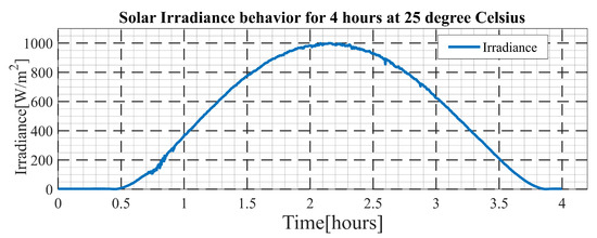 Illustration of the irradiance behavior for 4 h at 25 degree weather temperature.