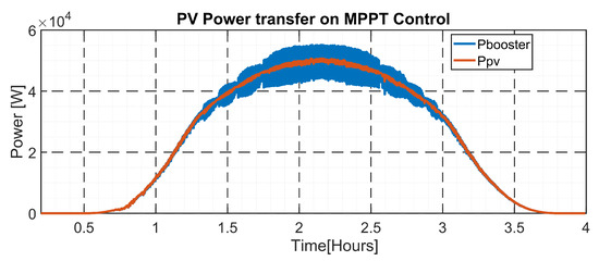 The control algorithm tracks the power transfer as illustrated in the Figure 22. The last confirms the correct performance of the MPPT control.