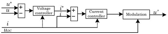 Figure 3 shows conceptually that the Master inverter implements two nested control loops for the mentioned purposes. The outer one corresponds to a voltage control loop, of which the control action acts as the setpoint for the inner current control loop. The Master Inverter is provided with an LC-type coupling filter at the AC side. Thus, the controlled voltage u is the AC voltage at the AC-provided capacitors, and the controlled current i is the current at the inductive coupling element. It should be noted that this i current is considered for both current loop feedback and protective criteria, as is detailed in Section 4.