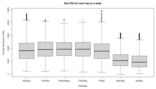Boxplots for each weekday from the data set “”.