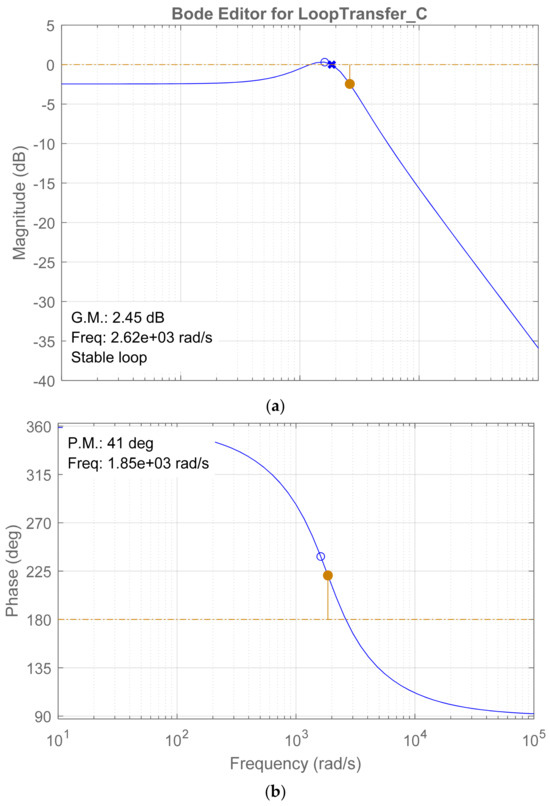 The obtained open-loop system has two complex poles at −261 rad/s and one positive zero at 1610 rad/s. From control theory, the system stability is directly related to the pole position of the system. Enhancing the system stability is usually related to the capability of the controller to shift the poles to the left-hand side. The positive zeros usually do not lead to total loss of stability of the system; however, they can pose serious issues like a large undershoot and minimizing the phase margin of the system. A common strategy to minimize the negative effect of the positive zeros on the systems is trying to make the zeros fast. Fast zeros are the zeros that are located far from the origin (0,0). The fast zeros have low negative effects compared with slow ones. The SISO tool in SIMULINK/MATLAB has been used to obtain and tune the parameters of the controller of the proposed system. The compensator improves the system’s stability and gives better performance by shifting the system’s poles to the stable side LHS.