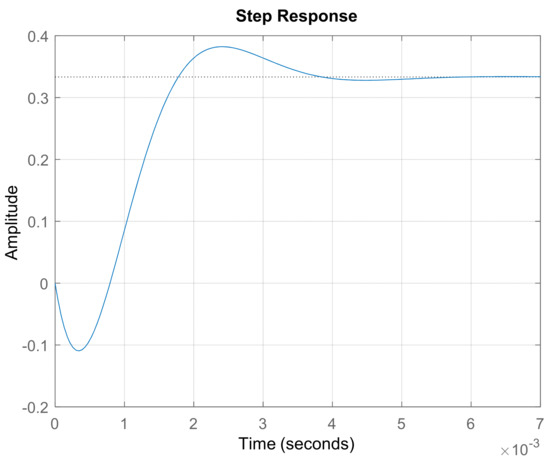 Thus, the most proper method to minimize the effect of the non-negative zero is trying to make it faster by locating it far from the origin (0,0) since faster zeros are less harmful than slower ones. Figure 5 shows the Bode plot of the boost converter without controllers, and the frequency response illustrates that the system is stable, and both the gain margin and phase margin are positive numbers. However, the systems seem critically stable since the gain margin is close to the negative region. The step response of the boost converter is illustrated in Figure 6, which shows a noticeable undershoot during transient time, which results from the non-negative zero of the boost converter transfer function. A proper controller should be selected to overcome this issue and shift the system to a stable region.