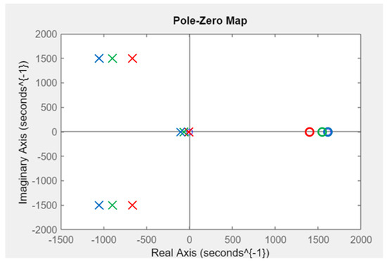 The poles and zeros for the parameters illustrated in Table 1 are plotted in Figure 7. The ki gain of the controller is fixed to 0.6, while kp varies from [0.2 to 0.5] to study the proposed system dynamics. The 0.25 gain of the kp parameter of the PID controller can provide the most proper dynamic response to the system. The SISO tool in SIMULINK/MATLAB has been used to obtain and tune the PR controller parameters, and the result illustrates that the most proper kp and kr gains of the PR controller that achieve appropriate stability and appropriate bandwidth are 3 and 5, respectively.